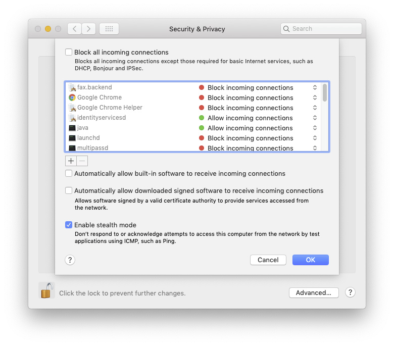 Note that macOS’s firewall can block the ICMP packets that ping uses, which will interfere with this test. Make sure you disable Stealth Mode in System Preferences > Security & Privacy > Firewall just for this test.