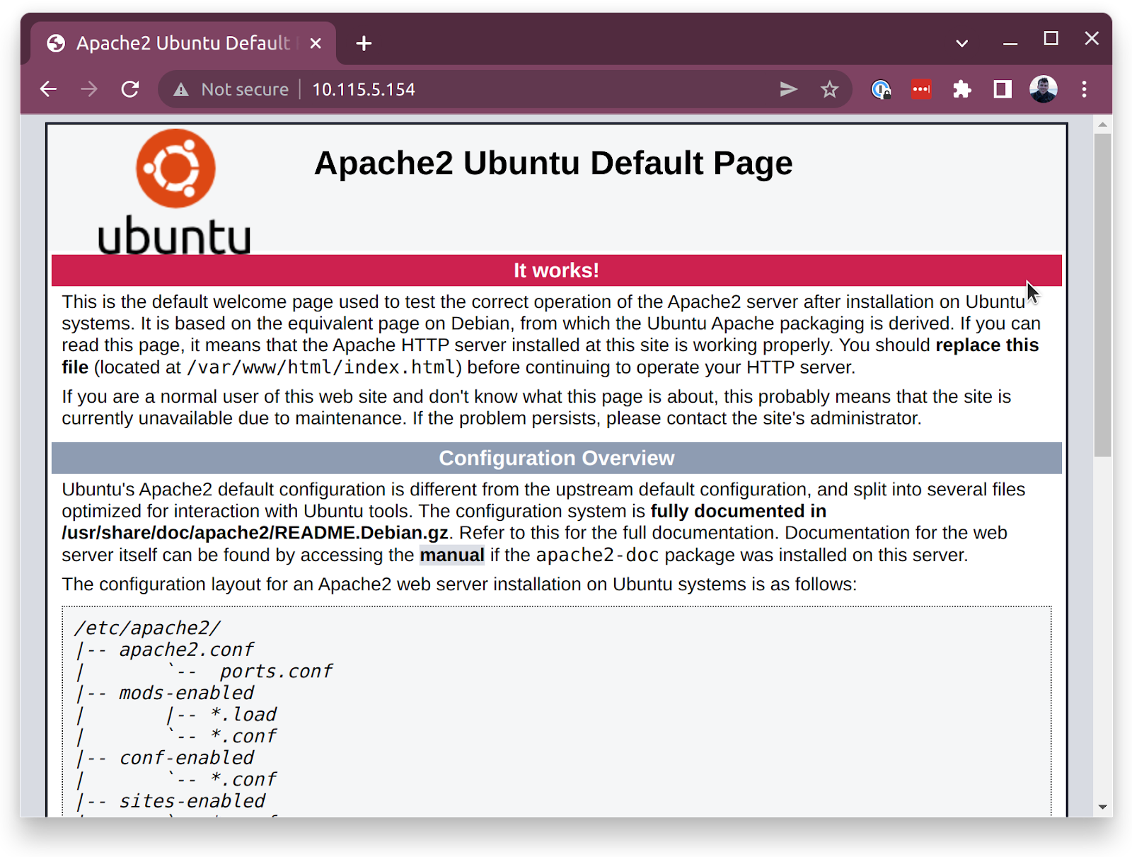 Open a browser and type in the IP address of your instance into the address bar. You should now see the default Apache homepage.