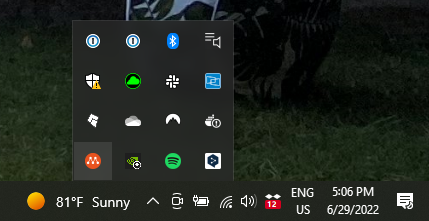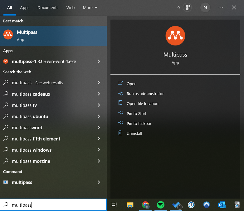 After launching the application, you should see the Multipass tray icon in the lower right section of the screen (you may need to click on the small arrow located there).